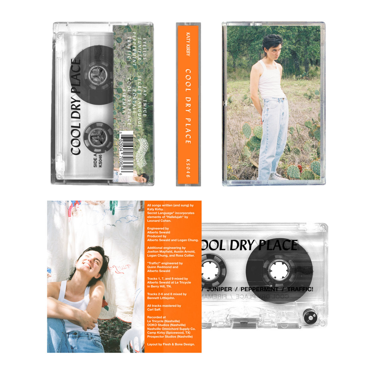 Cool Dry Place is the debut full-length album from Texas-bred, Nashville-based indie rocker, Katy Kirby. The nine songs here are equal parts driving indie-pop and artful folk songwriting in the vein of Waxahatchee, Lucy Dacus, and Frankie Cosmos. Intimate, vulnerable lyrics give way to anthemic choruses, true earworm, and memorable vocal melodies. The songs are miscellaneous in subject (motherhood, late capitalism, disintegrating relationships), but unified by the angle from which they're told, from a person re-learning to process life with intense attention. Each song is a catalog of fragments, the number of segments in an orange or the cut of an obsessively worn shirt, distilled into meditations on the bizarre and microscopic exchanges that make up modern life - a relationship splintering, an uncomfortable pause, an understanding finally found. These emotional dioramas are moderated by the angular storytelling that unites Gillian Welch and Phoebe Bridgers, a favor for the conventions of short fiction over confession.
