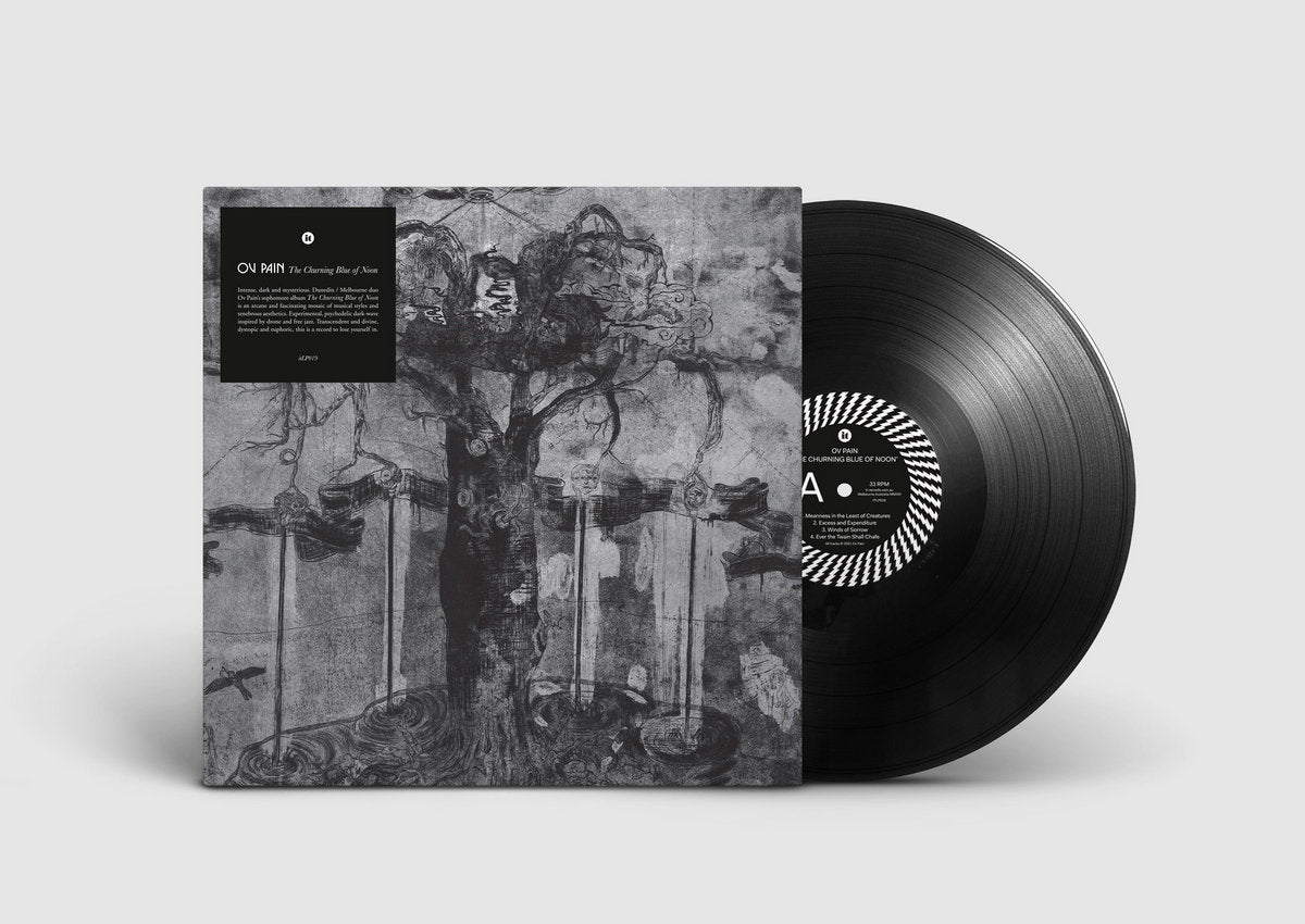 Dunedin/ Melbourne duo Ov Pain’s (Renee Barrance, Tim Player) sophomore album The Churning Blue of Noon is an arcane and fascinating mosaic of musical styles and tenebrous aesthetics. Delving into deeper and darker places than the frigid coldwave/ post-punk of their 2017 debut.