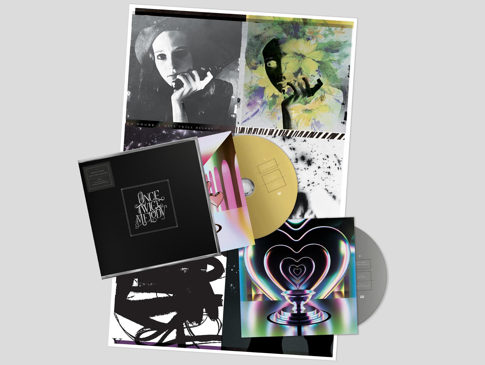 Beach House is Victoria Legrand, lead singer and multi-instrumentalist, and Alex Scally, guitarist and multi-instrumentalist. They write all of their songs together. Once Twice Melody is the first album produced entirely by the band. The live drums are by James Barone (same as their 2018 album, 7), and were recorded at Pachyderm studio in Minnesota and United Studio in Los Angeles. For the first time, a live string ensemble was used. Strings were arranged by David Campbell. The writing and recording of Once Twice Melody began in 2018 and was completed in July of 2021. Most of the songs were created during this time, though a few date back over the previous 10 years. Most of the recording was done at Apple Orchard Studio in Baltimore. Once Twice Melody was mixed largely by Alan Moulder but a few tracks were also mixed by Caesar Edmunds, Trevor Spencer, and Dave Fridmann.