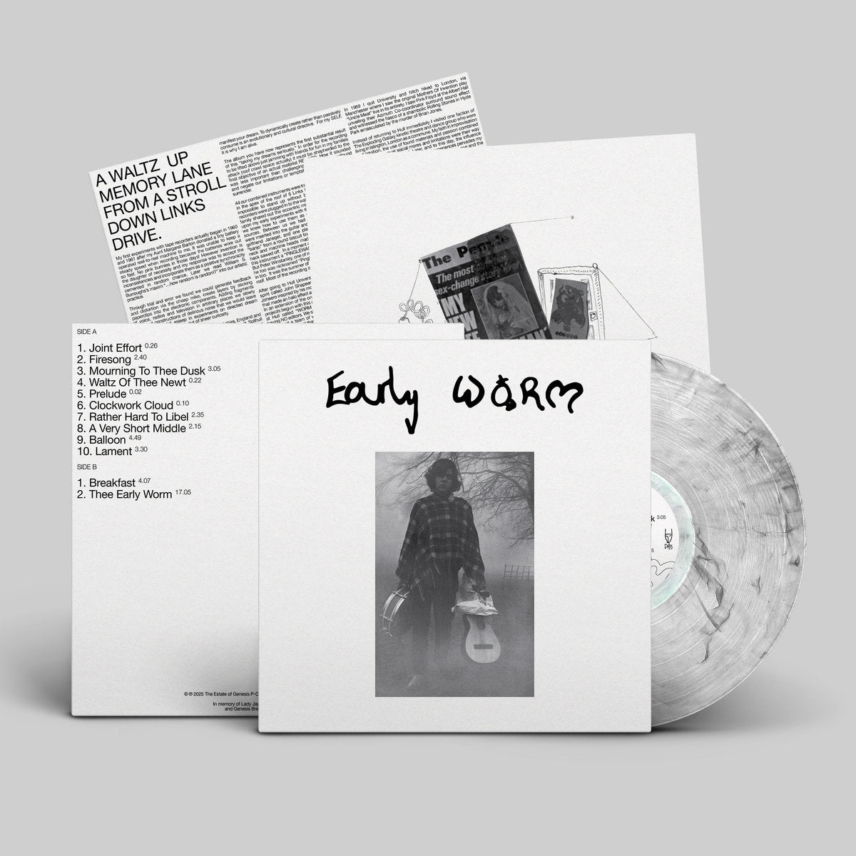 In the summer of 1968, an 18-year-old Genesis P-Orridge (then Neil Andrew Megson) gathered with friends in a modest attic space to experiment with sound. The result was Early Worm, a collection of recordings that capture the nascent creativity of an artist who would later become a pivotal figure in avant-garde music. These sessions, pressed to a single acetate in 1969, showcase a fearless exploration of noise, improvisation, and tape experiments, reflecting influences from psychedelia, Fluxus, John Cage, and beatnik Bohemia. Early Worm stands as a testament to P-Orridge's early commitment to pushing musical boundaries. The album's raw and unfiltered soundscapes offer listeners a rare glimpse into the foundational moments that would eventually lead to the formation of COUM Transmissions, Throbbing Gristle, and Psychic TV.